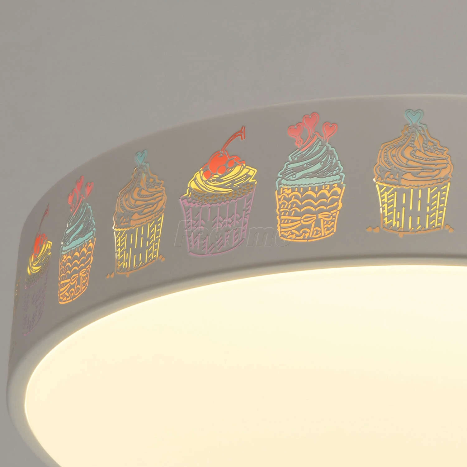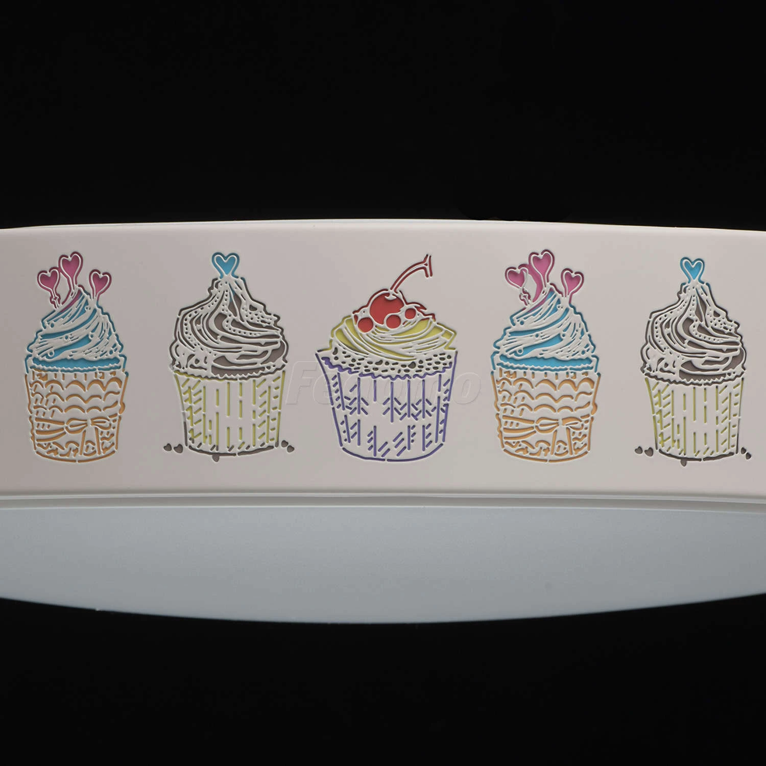 Основание светильника выполнено из металла и окрашено в белый глянцевый цвет. Рисунок на абажуре выполнен по технологии лазерной резки. Внутренняя часть абажура окрашена в разные цвета. Светодиодный источник света типа SMD-board закрыт рассеивателем из бе