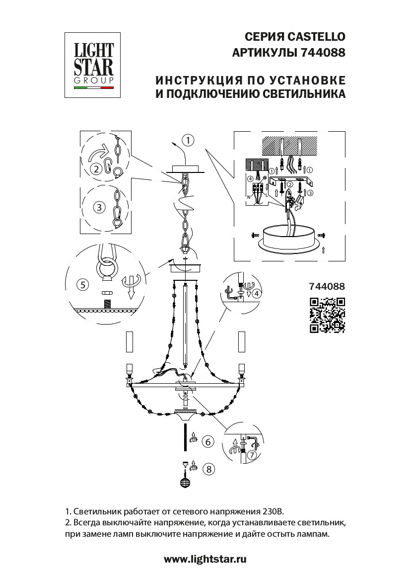 Люстра подвесная 744088 из серии Castello от компании Lightstar устанавливается на монтажную пластину. Классическая люстра в виде подсвечника прекрасно подойдет в качестве источника основного света для гостиной, спальни, оформленных в стиле замковый. Основной цвет модели - коричневый, материал арматуры - металл. Модель оснащена цоколем E14 (8xE14), имеет 8 лампочек с общей мощностью 320W и напряжением 220V. Светильник поддерживает подключение диммера. Лампочки в комплект не входят. Лучшая цена и условия доставки на Lightstar 744088 в интернет-магазине Fedomo.ru.