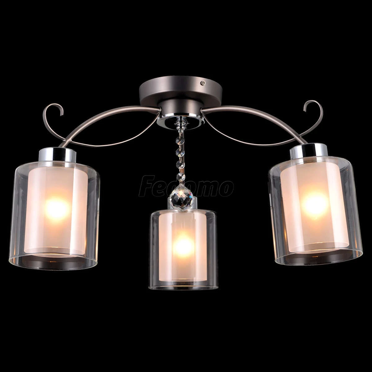 Люстра потолочная Natali Kovaltseva Mystery, 3 плафона, никель с хромом, белый с прозрачным