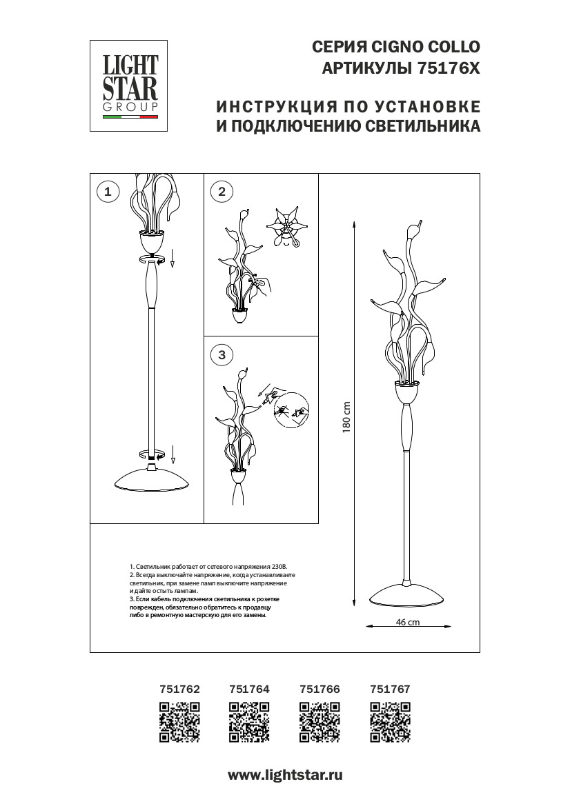 Торшер 751762 из серии CIGNO COLLO от компании Lightstar будет удачно смотреться на полу в гостиной, спальне, оформленных в классическом стиле. Торшер с листьями имеет 6 плафонов и 6 лампочку с цоколем G4, мощностью 20W и напряжением 12V. Модель устанавливается на основание. Основной материал и цвет арматуры - золотистый металл. Торшер оборудован ножным выключателем. Габариты изделия: высота - 1800 мм. В комплекте есть провод электропитания с вилкой без заземления, трансформатор 12V. Лучшая цена и условия доставки на Lightstar 751762 в интернет-магазине Fedomo.ru.