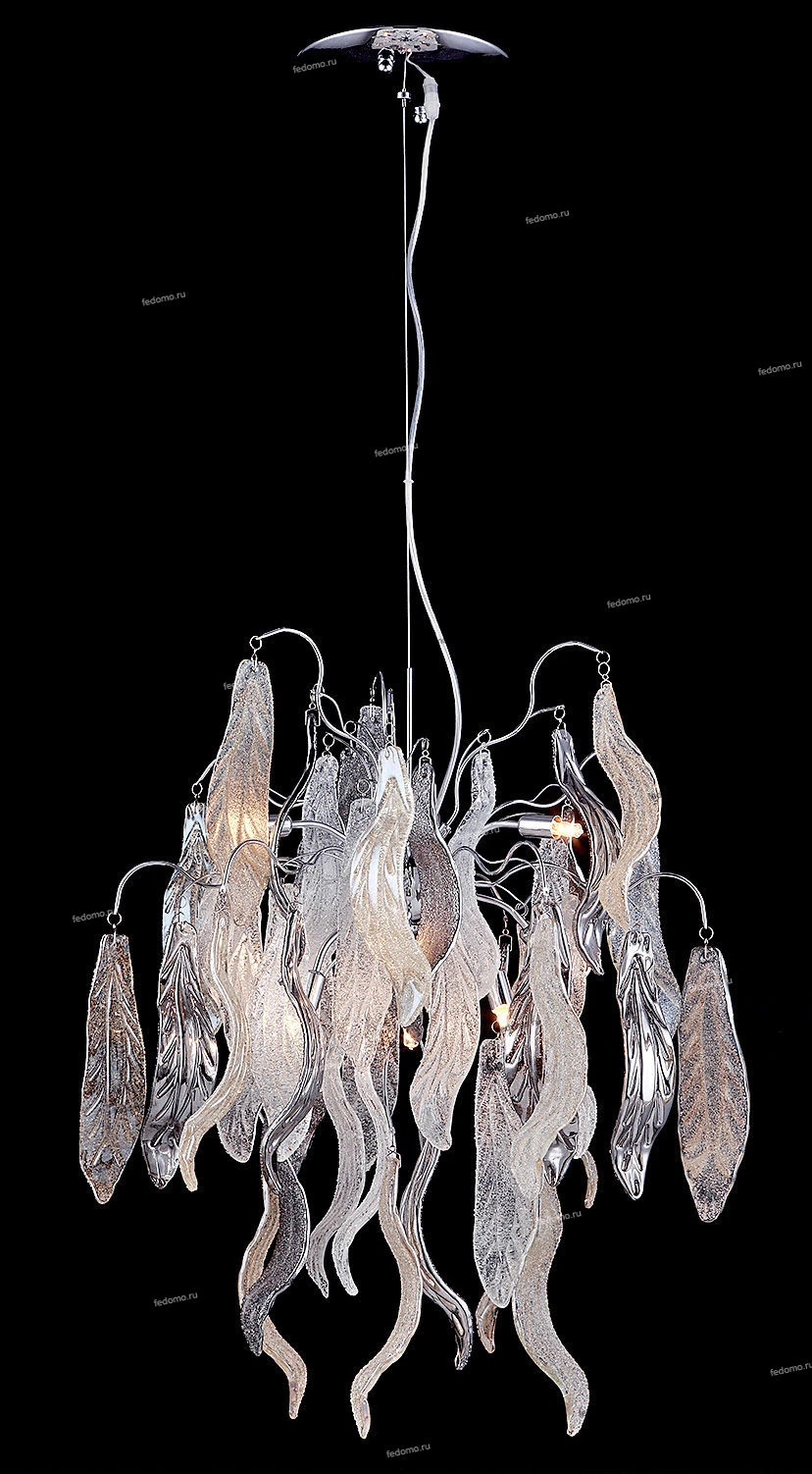 Люстра подвесная 793195 из серии VETRO COLORE от компании Lightstar регулируется по высоте и устанавливается на монтажную пластину. Современная люстра с листьями украшена хрусталем и прекрасно подойдет в качестве источника основного света для гостиной, спальни, оформленных в стиле флористика, ар нуво. Основной цвет модели - серый, хром, материал арматуры - металл. Люстра имеет 1 декоративный плафон. Модель оснащена цоколем G9 (9xG9), имеет 9 лампочек с общей мощностью 360W и напряжением 220V. Светильник поддерживает подключение диммера. Габариты: высота - 870 мм, диаметр - 570 мм. Лампочки в комплект не входят. Лучшая цена и условия доставки на Lightstar 793195 в интернет-магазине Fedomo.ru.