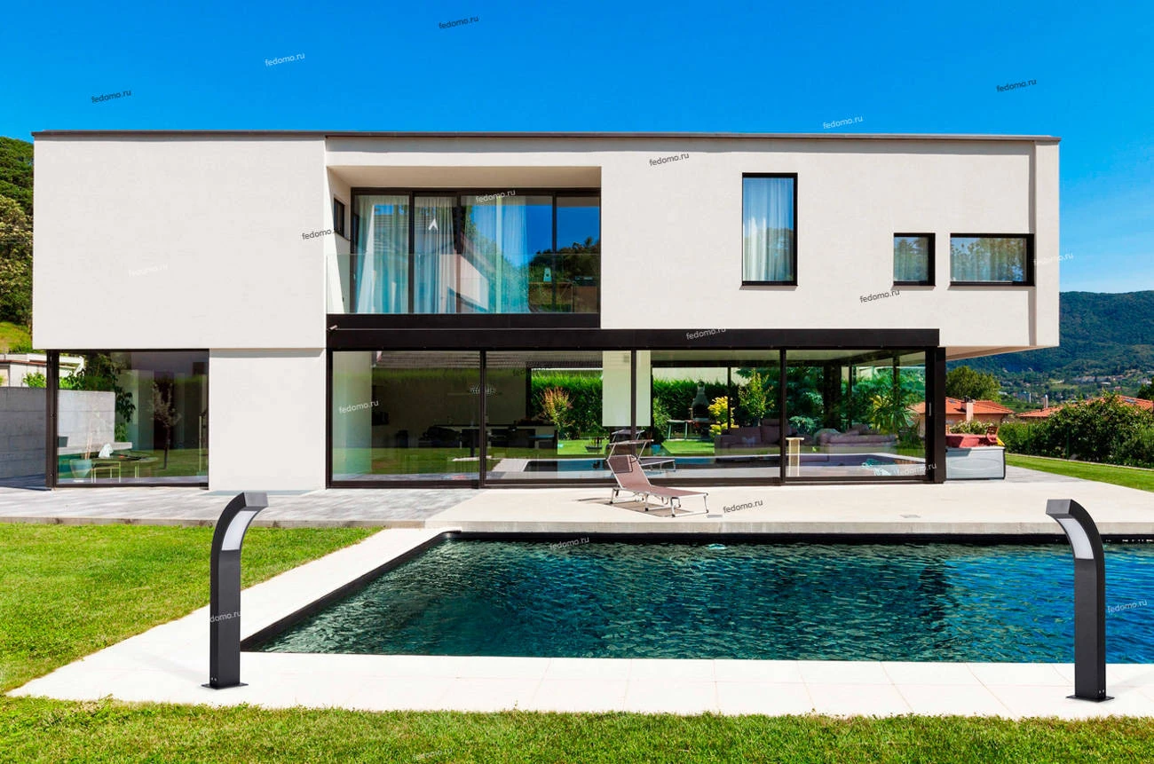 Освещение экстерьера не менее важно, чем внутреннее убранство дома. Для современного загородного участка идеально подойдет архитектурно-ландшафтный светильник из коллекции «Уран». Матовое металлическое основание черного цвета создает гармоничный дуэт с ис