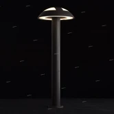 Для ценителей сочетаний строгого минимализма и оригинальных форм идеально подойдет архитектурно-ландшафтный светильник из коллекции «Меркурий». Основание из металла цвета графит гармонично сочетается с источниками света-светодиодами, скрытыми под матовым