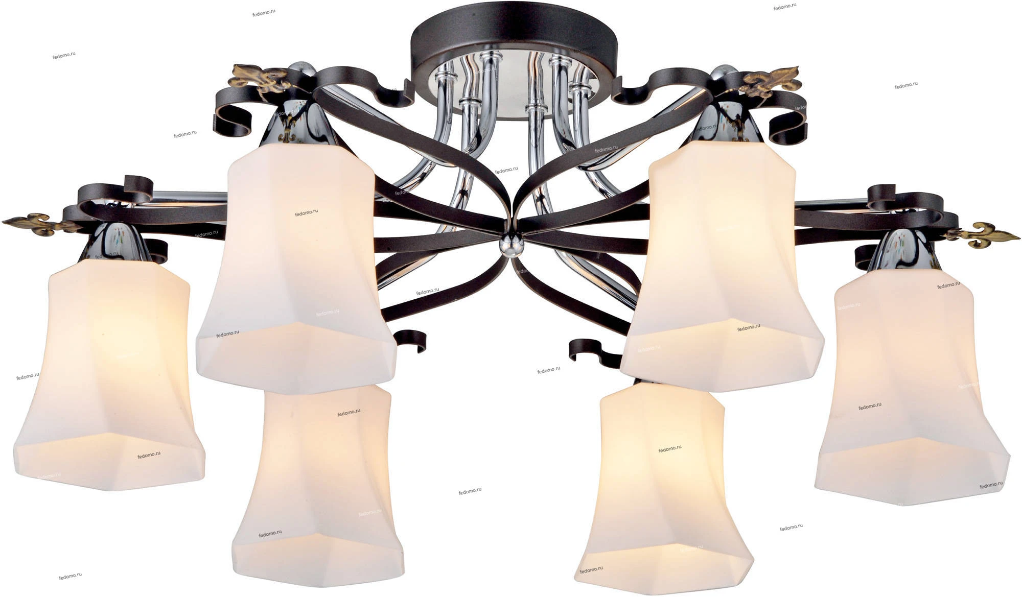 Люстра потолочная 849/6PF-Dark из серии Monga от компании IDlamp устанавливается на монтажную пластину. Классическая люстра прекрасно подойдет в качестве источника основного света для гостиной, прихожей и коридора, кафе, кабинета. Основной цвет модели - черный, материал арматуры - металл. Люстра имеет 6 плафонов со свечением вниз, материал изготовления - стекло. Модель оснащена цоколем E14 (6xE14), имеет 6 лампочек с общей мощностью 240W и напряжением 220V. Светильник поддерживает подключение диммера. Габариты: длина - 550 мм, ширина - 550 мм, высота - 270 мм, диаметр - 550 мм. Лампочки в комплект не входят. Лучшая цена и условия доставки на IDlamp 849/6PF-Dark в интернет-магазине Fedomo.ru.