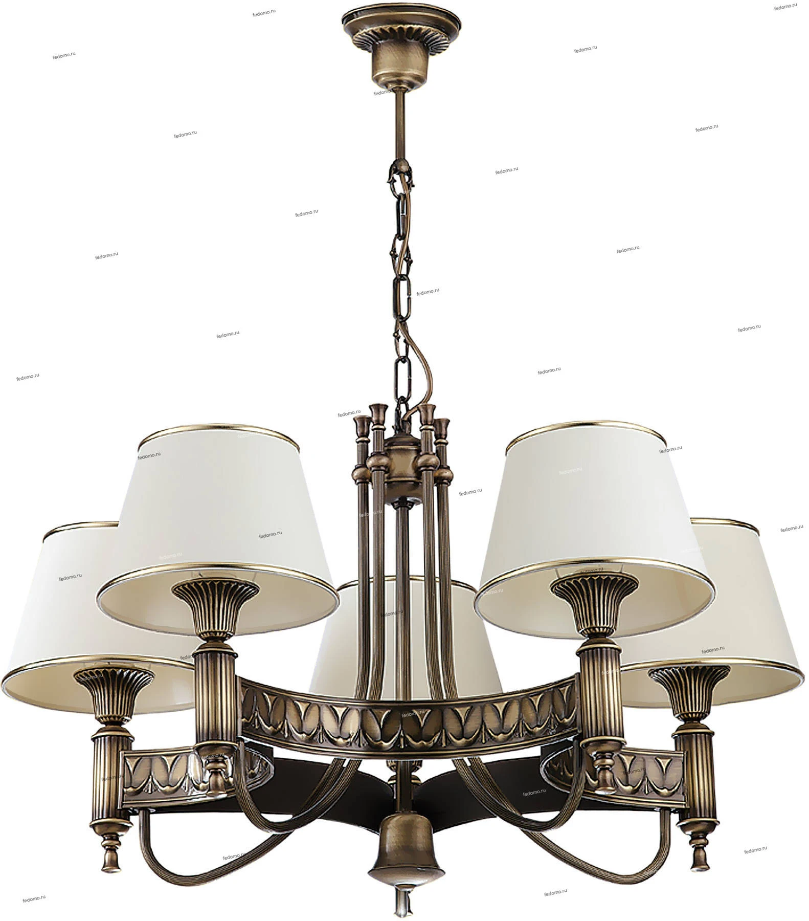 Люстра подвесная 868 FR 5 p ab из серии Fryderyk от компании Jupiter устанавливается на металлический крюк. Классическая люстра прекрасно подойдет в качестве источника основного света для гостиной, холла, спальни, кухни. Основной цвет модели - бежевый, материал арматуры - металл. Люстра имеет 5 абажуров со свечением вверх, материал изготовления - матовая ткань. Модель оснащена цоколем E27 (5xE27), имеет 5 лампочек с общей мощностью 300W и напряжением 220V. Светильник поддерживает подключение диммера. Габариты: высота - 820 мм, диаметр - 840 мм. Лампочки в комплект не входят. Лучшая цена и условия доставки на Jupiter 868 FR 5 p ab в интернет-магазине Fedomo.ru.