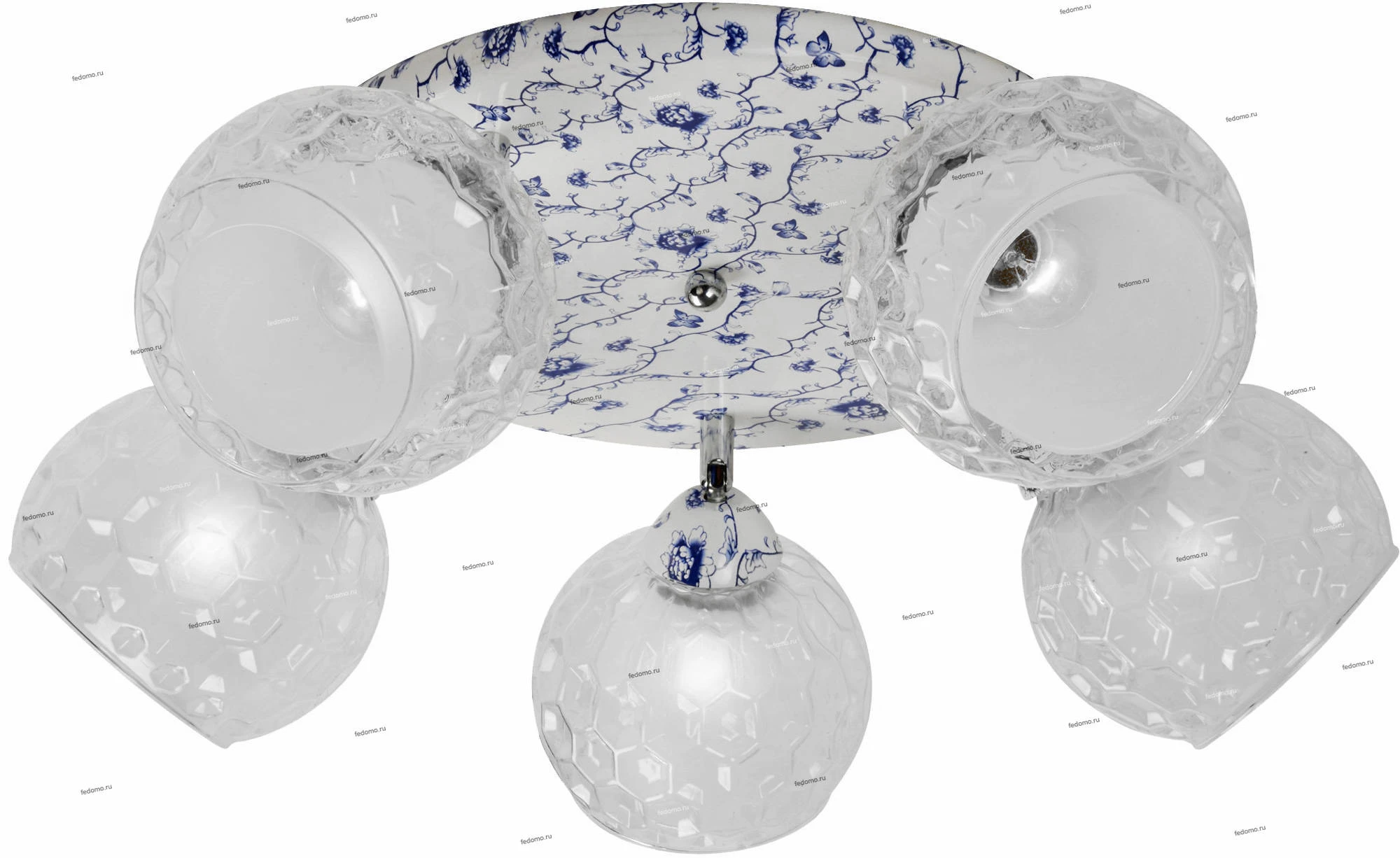Люстра потолочная 876/5PF-Whiteblue из серии Zeta от компании IDlamp устанавливается на монтажную пластину. Люстра прекрасно подойдет в качестве источника основного света для гостиной, прихожей и коридора, кафе, кабинета, оформленных в стиле модерн. Основной цвет модели - белый, голубой, материал арматуры - металл. Люстра имеет 5 плафонов со свечением вниз, материал изготовления - стекло. Модель оснащена цоколем E27 (5xE27), имеет 5 лампочек с общей мощностью 300W и напряжением 220V. Светильник поддерживает подключение диммера. Габариты: длина - 550 мм, ширина - 550 мм, высота - 200 мм, диаметр - 550 мм. Лампочки в комплект не входят. Лучшая цена и условия доставки на IDlamp 876/5PF-Whiteblue в интернет-магазине Fedomo.ru.