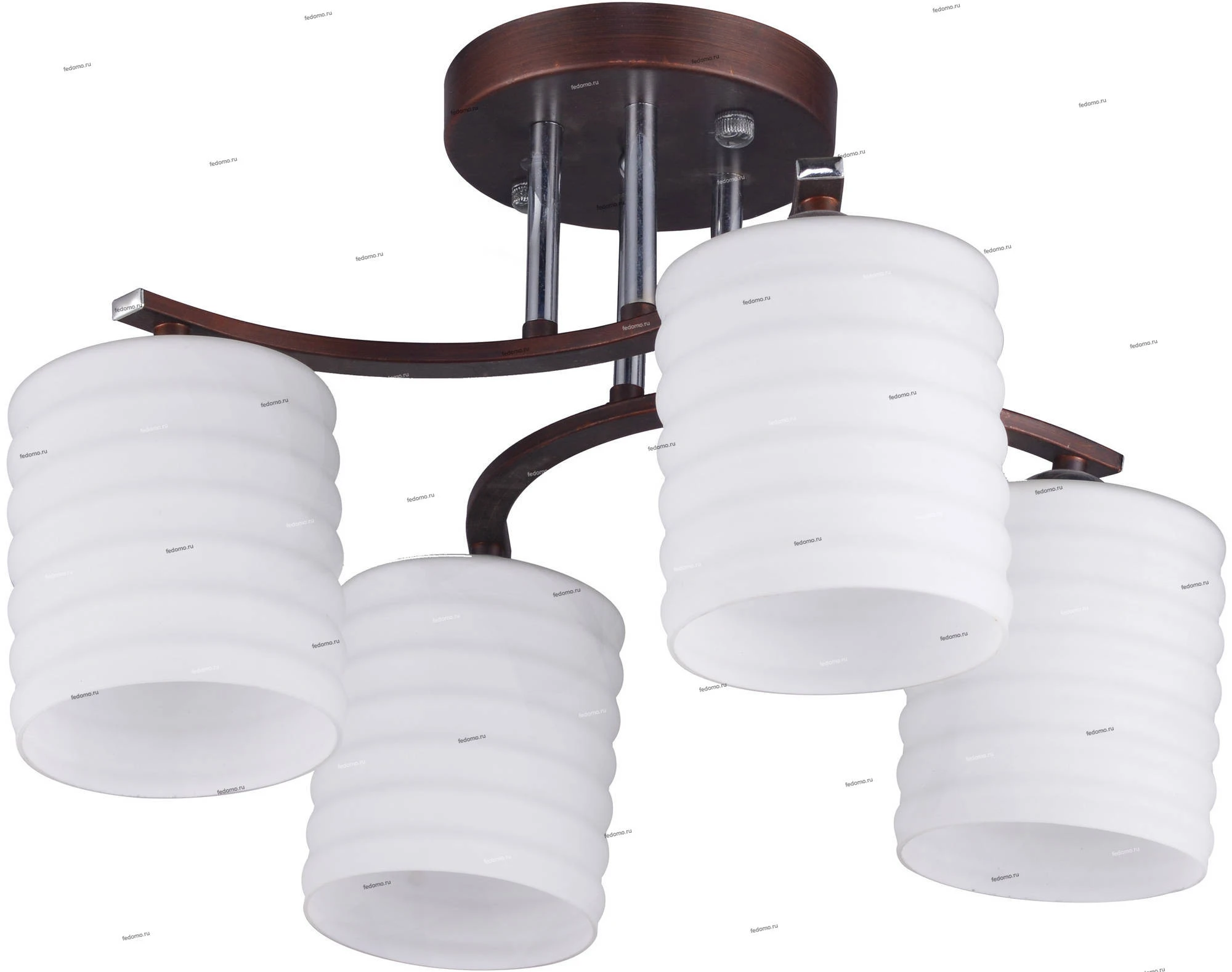 Люстра потолочная венге 878/4PF-Darkcopper из серии Gemma от компании IDlamp устанавливается на монтажную пластину. Классическая люстра прекрасно подойдет в качестве источника основного света для гостиной, прихожей и коридора, кафе, кабинета, оформленных в стиле модерн. Основной цвет модели - черный, материал арматуры - металл. Люстра имеет 4 плафона со свечением вниз, материал изготовления - стекло. Модель оснащена цоколем E27 (4xE27), имеет 4 лампочки с общей мощностью 160W и напряжением 220V. Светильник поддерживает подключение диммера. Габариты: длина - 370 мм, ширина - 350 мм, высота - 280 мм. Лампочки в комплект не входят. Лучшая цена и условия доставки на IDlamp 878/4PF-Darkcopper в интернет-магазине Fedomo.ru.
