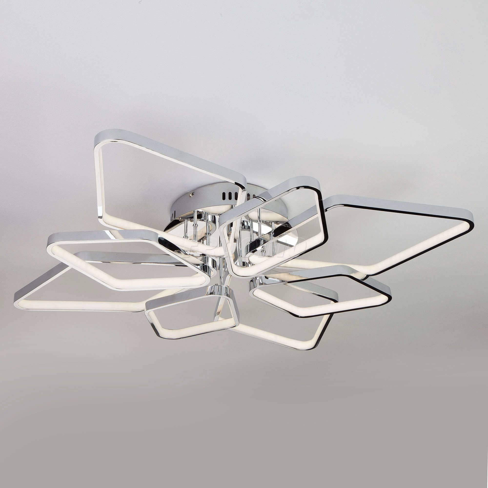 Люстра потолочная 90081/8 хром 124W из серии Kalifea от компании Eurosvet устанавливается на монтажную пластину. Современная люстра прекрасно подойдет в качестве источника основного света для гостиной, прихожей и коридора, спальни, кухни, кабинета, оформленных в стиле хай-тек, минимализм. Основной цвет модели - хром, материал арматуры - металл. Люстра имеет 8 рассеивателей со свечением вниз, материал изготовления - матовый акрил. Светодиодная модель с цоколем LED, имеет 620 светодиодов общей мощностью 124W и напряжением 230V. Светильник имеет цветовую температуру 4200К. Габариты: длина - 800 мм, ширина - 800 мм, высота - 130 мм. В комплекте есть лампочки. Срок службы модели составит не менее 50000 часов. Лучшая цена и условия доставки на Eurosvet 90081/8 хром 124W в интернет-магазине Fedomo.ru.