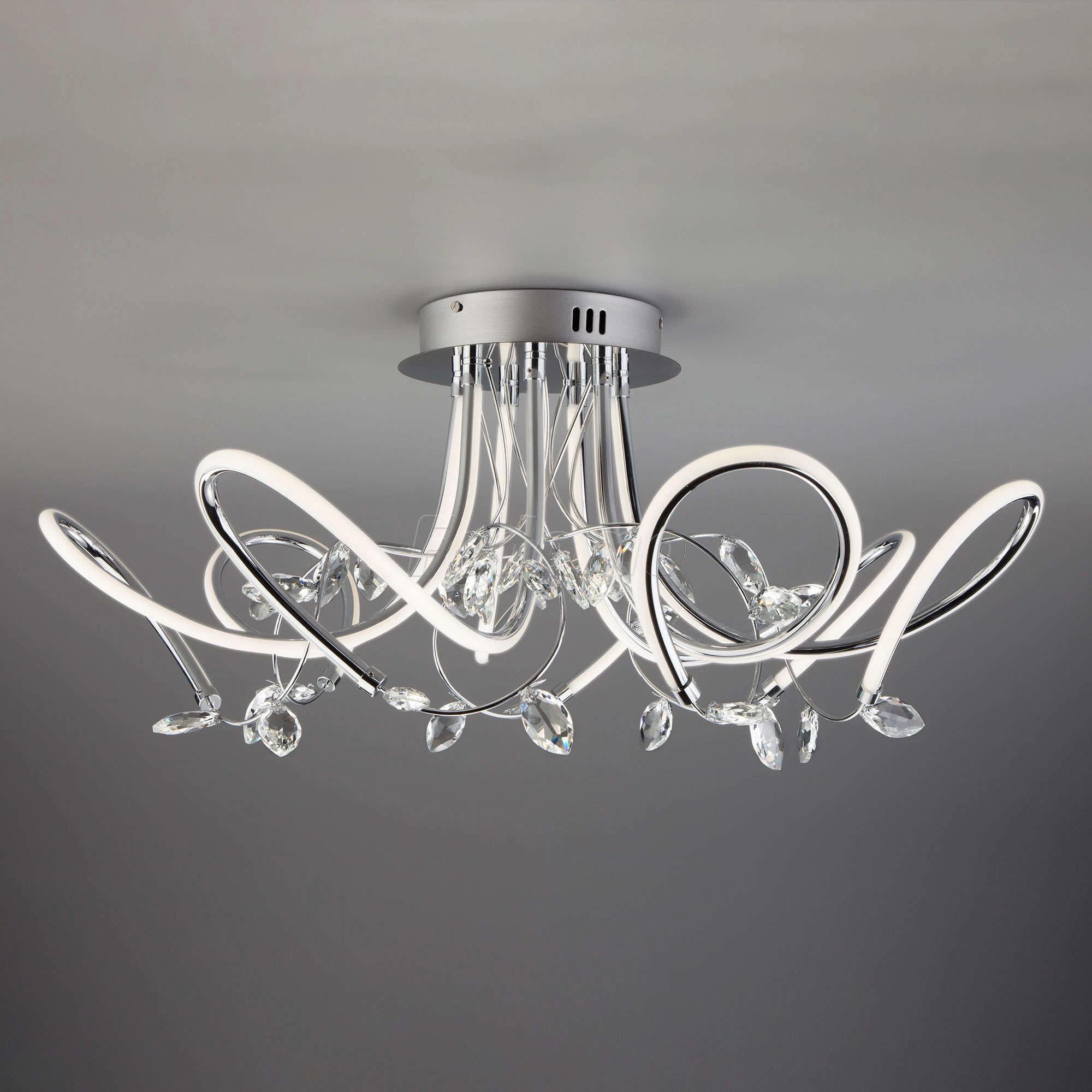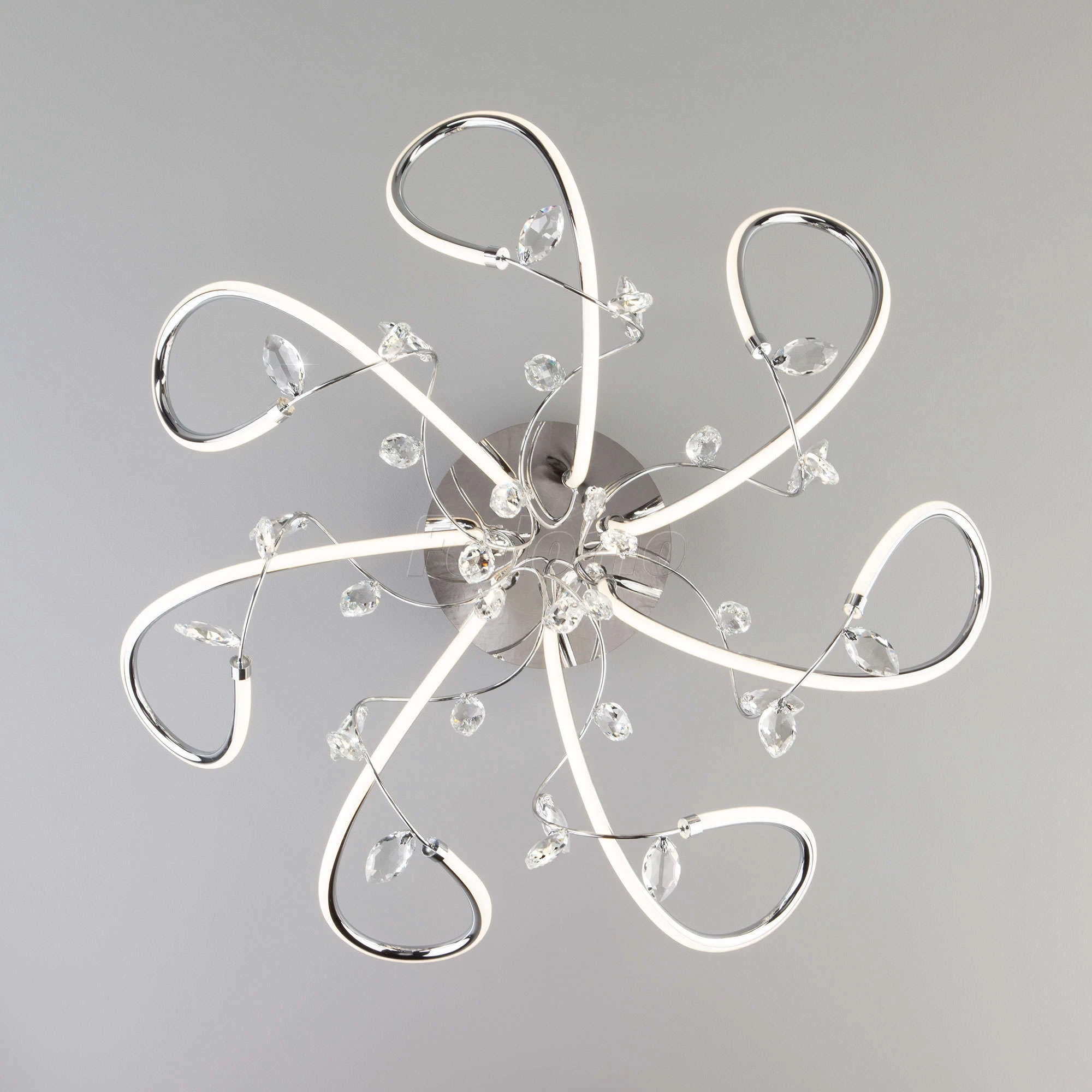 Люстра потолочная 90106/7 хром из серии Irvine от компании Eurosvet устанавливается на монтажную пластину. Современная люстра с лепестками украшена хрусталем и прекрасно подойдет в качестве источника основного света для гостиной, спальни, кухни, офиса, оформленных в стиле хай-тек, минимализм. Основной цвет модели - хром, материал арматуры - металл. Люстра имеет 7 рассеивателей со свечением вниз, материал изготовления - матовый акрил. Светодиодная модель с цоколем LED (7xLED), имеет 420 светодиодов и 7 лампочек с общей мощностью 97W и напряжением 220V. Светильник имеет цветовую температуру 4200К. Габариты: длина - 550 мм, ширина - 550 мм, высота - 240 мм. В комплекте есть лампочки. Срок службы модели составит не менее 50000 часов. Лучшая цена и условия доставки на Eurosvet 90106/7 хром в интернет-магазине Fedomo.ru.