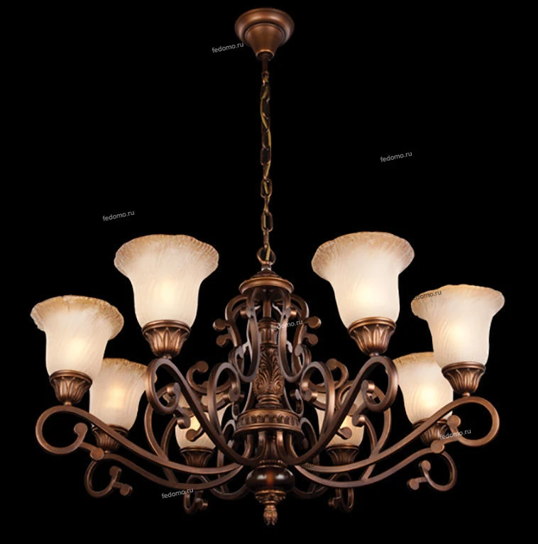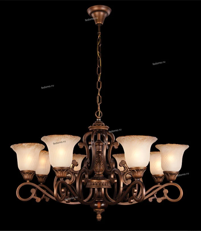 Люстра подвесная 924/8 из серии 924 от компании Bogate's регулируется по высоте и устанавливается на металлический крюк. Классическая люстра прекрасно подойдет в качестве источника основного света для гостиной, прихожей и коридора, кафе, кабинета. Основной цвет модели - коричневый, материал арматуры - металл. Люстра имеет 8 плафонов со свечением вверх, материал изготовления - стекло. Модель оснащена цоколем E27, имеет 8 лампочек с общей мощностью 480W и напряжением 220V. Светильник поддерживает подключение диммера. Габариты: диаметр - 930 мм. Лучшая цена и условия доставки на Bogate's 924/8 в интернет-магазине Fedomo.ru.