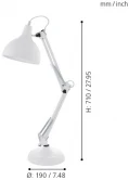 Интерьерная настольная лампа для школьников 94699 из серии Borgillio от компании Eglo будет удачно смотреться на столе в гостиной, кабинете, офисе, зале, оформленных в современном стиле. Интерьерная лампа имеет 1 плафон и 1 лампочку с цоколем E27, мощностью 60W и напряжением 220V. Модель устанавливается на основание. Основной материал и цвет арматуры - белый металл. Интерьерная лампа оборудована выключателем на проводе. Габариты изделия: длина - 400 мм, ширина - 190 мм, высота - 710 мм. Лучшая цена и условия доставки на Eglo 94699 в интернет-магазине Fedomo.ru.