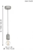 Подвесной светильник 95522 из серии Eglo Silvares от компании Eglo подойдет для освещения дачи, кухни, магазина, над кухонным островом, над обеденным столом, прихожей и коридора, веранды и беседки, оформленных в стиле минимализм. Основной цвет изделия - серый, материал плафона - бетон. Рассчитан на 1 лампочку с цоколем E27 и освещает площадь до 4 кв. м. Лучшая цена и условия доставки на Eglo Silvares 95522 в интернет-магазине Fedomo.ru.