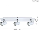 Спот 95994 из серии Tamara 1 от компании Eglo удачно впишется в интерьер ванной, оформленной в стиле хай-тек, техно. Спот имеет 3 плафона и 3 лампочки с цоколем GU10 с мощностью 3,3W, напряжением 220V. Основной цвет и материал арматуры - белый металл, стекло. Степень защиты от влаги и пыли IP44. Лампочки имеются в комплекте. Габариты модели: длина - 460 мм, ширина - 70 мм. Срок службы изделия составляет не менее 15000 часов. Лучшая цена и условия доставки на Eglo 95994 в интернет-магазине Fedomo.ru.
