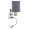 Бра для чтения 96479 из серии Pasteri от компании Eglo отлично подойдет в качестве дополнительного источника света для гостиной, прихожей и коридора, кафе, спальни, офиса, выполненных в стиле модерн, современный. Основной цвет модели - серый, материал арматуры - металл. Двухрожковое бра имеет 2 лампочки, оснащено цоколем E27, LED с общей мощностью 43, 5W и напряжением 220V. Материал изготовления плафона - ткань. Модель имеет цветовую температуру 3000К. Модель оборудована выключателем на корпусе. Лучшая цена и условия доставки на Eglo 96479 в интернет-магазине Fedomo.ru.