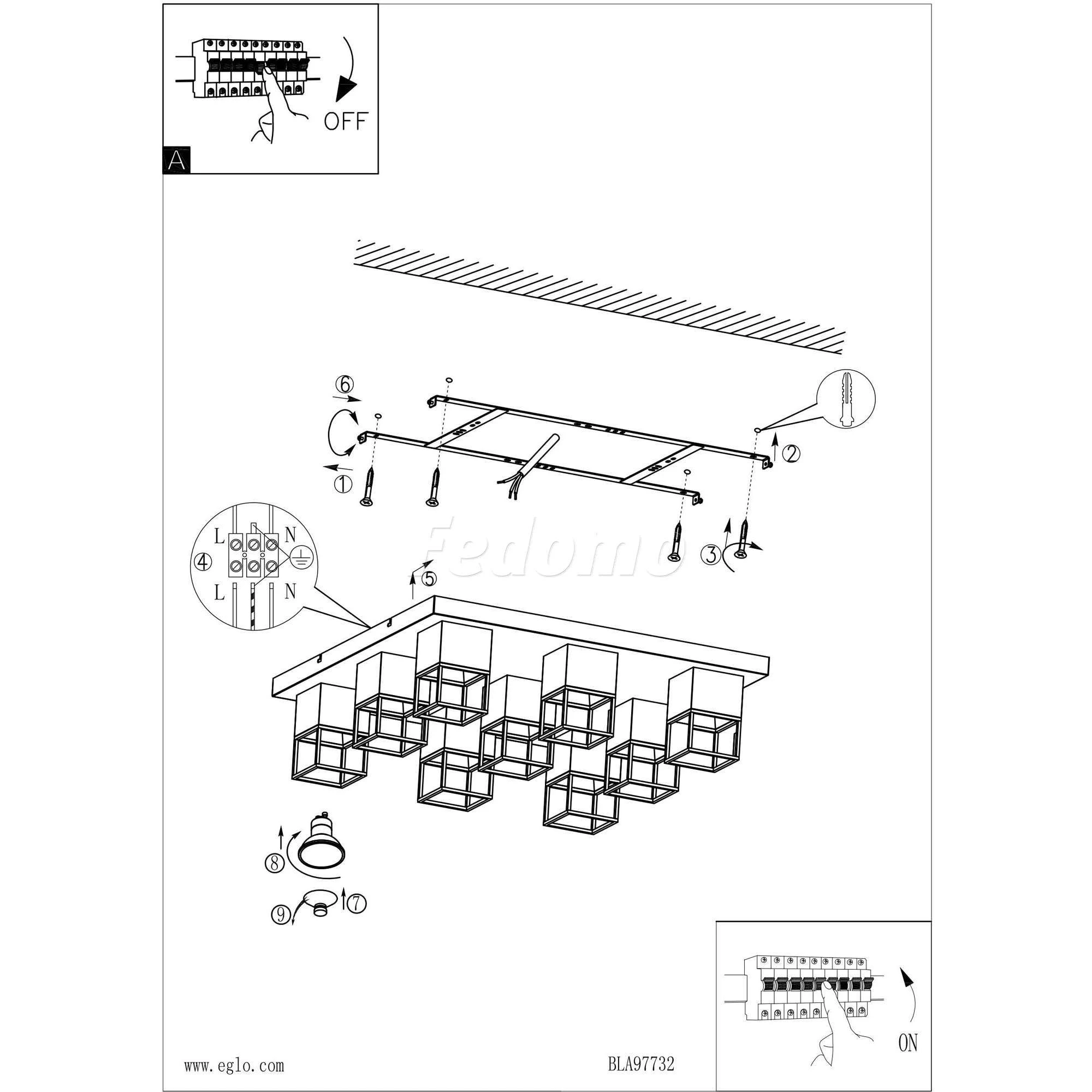 Люстра потолочная 97732 из серии Montebaldo от компании Eglo устанавливается на монтажную пластину. Люстра в форме куба прекрасно подойдет в качестве источника основного света для гостиной, кафе, кухни, кабинета, офиса, оформленных в стиле хай-тек. Основной цвет модели - черный, материал арматуры - металл. Люстра имеет 9 рассеивателей со свечением вниз, материал изготовления - матовый металл. Модель оснащена цоколем GU10 (9xGU10), имеет 9 лампочек с общей мощностью 45W и напряжением 220V. Лампочки в комплект не входят. Лучшая цена и условия доставки на Eglo 97732 в интернет-магазине Fedomo.ru.