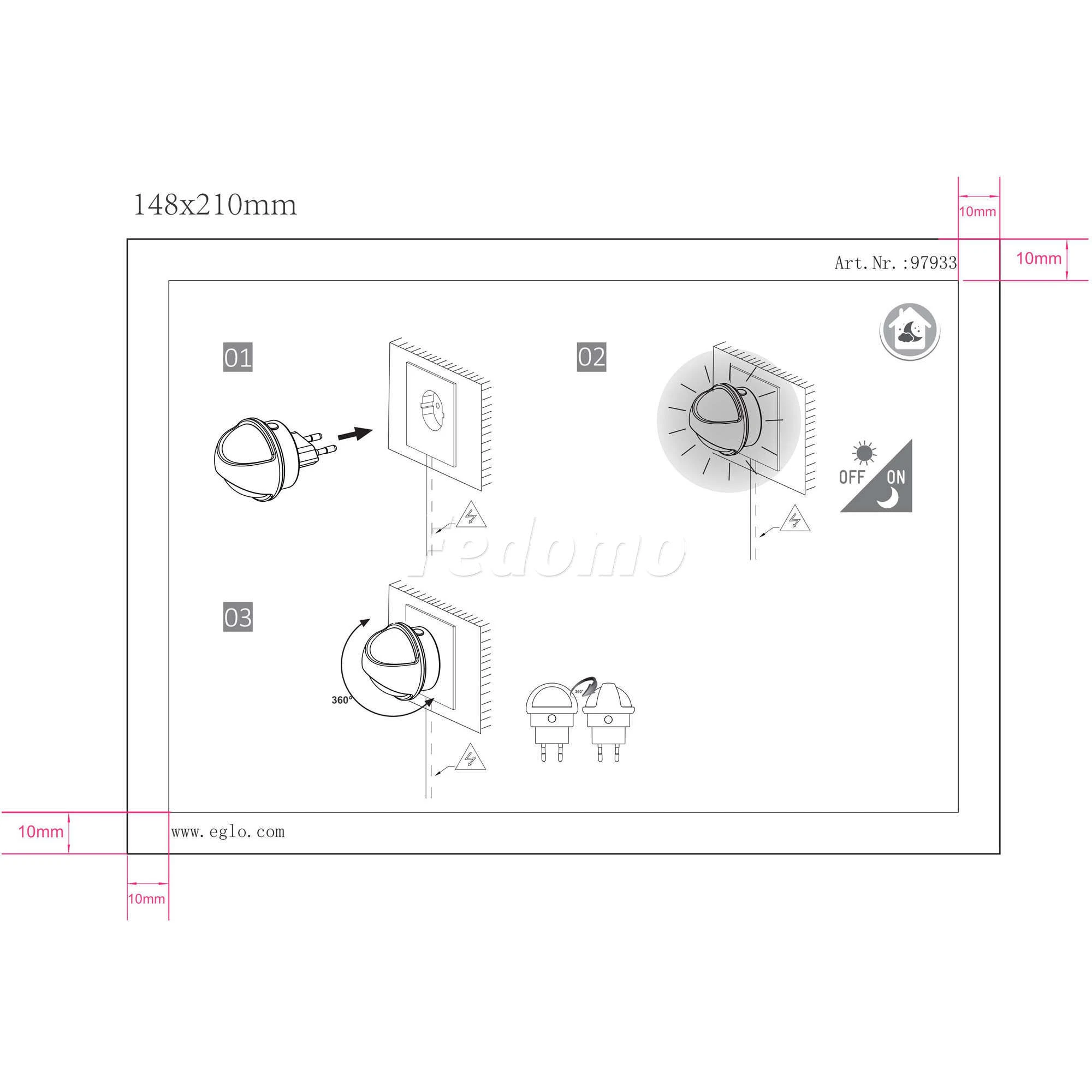 Детский настенный ночник 97933 из серии Tineo от компании Eglo создаст уютное освещение в спальне, детской, оформленных в стиле современный. Ночник имеет 1 лампочку. Мощность 0,26W, напряжение 220V. Основной материал изделия - матовый пластик, материал плафона - пластик. Модель подключается к розетке, оснащена датчиком движения. Лампочка прилагается в комплекте. Лучшая цена и условия доставки на Eglo 97933 в интернет-магазине Fedomo.ru.