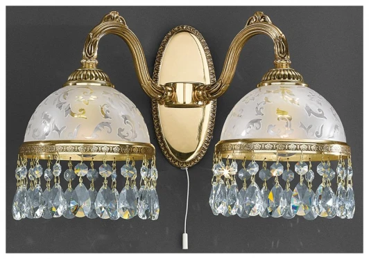 Бра A 6300/2 из серии 6300 от компании Reccagni Angelo отлично подойдет в качестве дополнительного источника света для гостиной, спальни, выполненных в стиле классический, ампир. Основной цвет модели - желтый, золото, материал арматуры - металл. Двухрожковое бра имеет 2 лампочки, оснащено цоколем E27 с общей мощностью 120W и напряжением 220V. Плафоны направлены вниз, материал изготовления - стекло. Светильник поддерживает подключение диммера. Модель оборудована выключателем на веревочке. Лампочки в комплект не входят. Лучшая цена и условия доставки на Reccagni Angelo A 6300/2 в интернет-магазине Fedomo.ru.