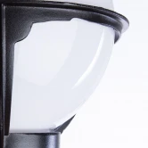 Используемые материалы арматуры - алюминий, плафона - полиметилметакрилат (пластик). Цвет базы - черный, плафон - белый.
