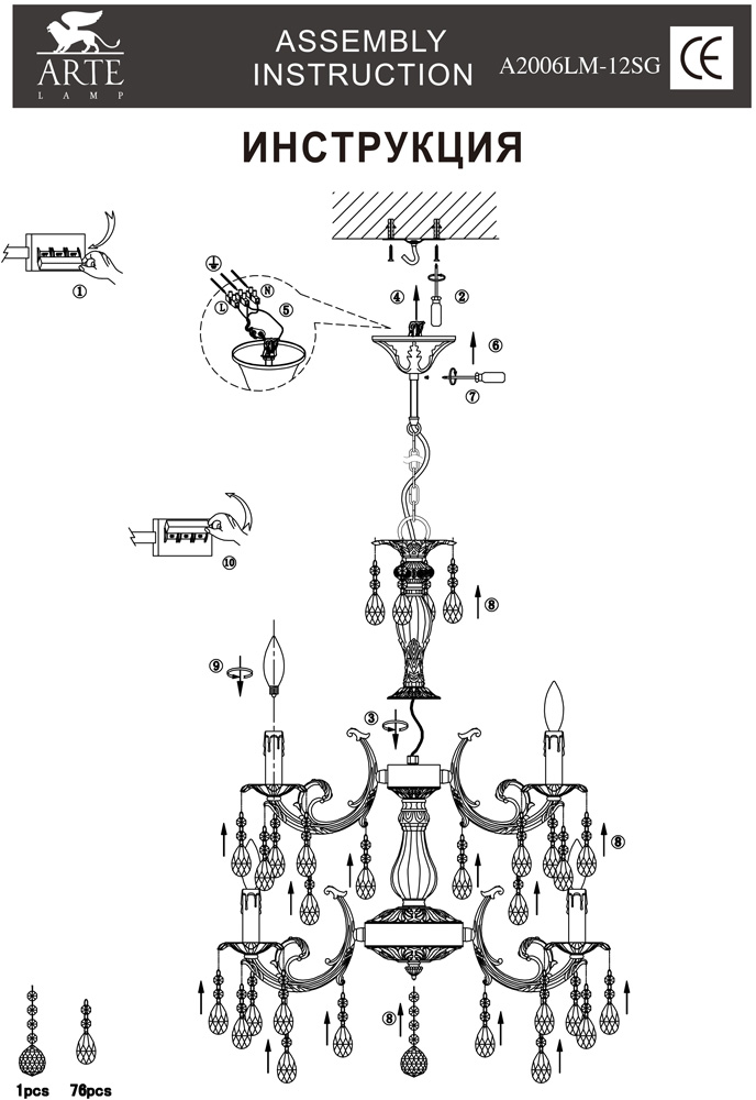 Люстра подвесная большая каскадная A2006LM-12SG из серии Superb от компании Arte Lamp устанавливается на металлический крюк. Классическая люстра в виде подсвечника украшена литьем из металла и прекрасно подойдет в качестве источника основного света для гостиной, прихожей и коридора, кафе, холла, оформленных в стиле барокко. Основной цвет модели - золото, материал арматуры - металл. Модель оснащена цоколем E14 (12хE14), имеет 12 лампочек с общей мощностью 720W и напряжением 220V. Светильник поддерживает подключение диммера. Габариты: высота - 730 мм, диаметр - 680 мм, длина подвеса - 450 мм. В комплекте есть скоба для крепления к потолку. Лучшая цена и условия доставки на Arte Lamp A2006LM-12SG в интернет-магазине Fedomo.ru.