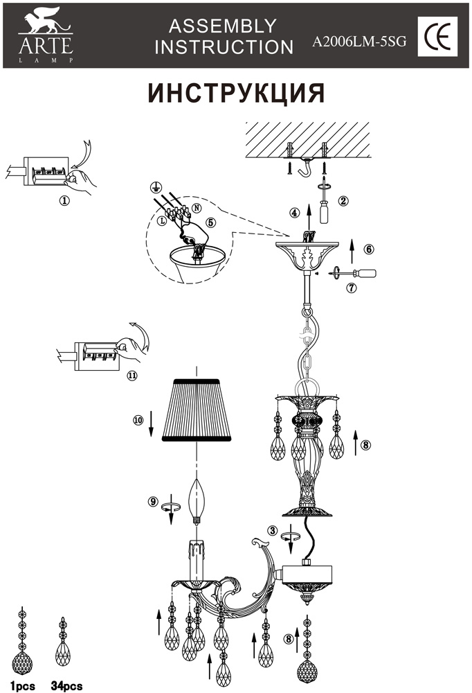 Люстра подвесная A2006LM-5SG из серии Superb от компании Arte Lamp регулируется по высоте и устанавливается на металлический крюк. Классическая люстра украшена декоративными элементами из хрусталя и металлическим литьем и прекрасно подойдет в качестве источника основного света для гостиной, кабинета, кафе, холла, прихожей и коридора, оформленных в стиле барокко. Основной цвет модели - белый, материал арматуры - металл. Люстра имеет 5 абажуров со свечением вверх, материал изготовления - матовая ткань, хрусталь. Модель оснащена цоколем E14 (5хE14), имеет 5 лампочек с общей мощностью 300W и напряжением 220V. Светильник поддерживает подключение диммера. Габариты: высота - 490 мм, диаметр - 530 мм, длина подвеса - 700 мм. В комплекте есть скоба для крепления к потолку. Лучшая цена и условия доставки на Arte Lamp A2006LM-5SG в интернет-магазине Fedomo.ru.