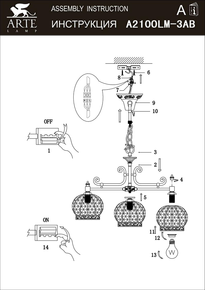 Люстра подвесная A2100LM-3AB из серии Venezia от компании Arte Lamp регулируется по высоте и устанавливается на металлический крюк. Люстра украшена декоративными элементами из стекла ручной работы и прекрасно подойдет в качестве источника основного света для гостиной, прихожей и коридора, кафе, кабинета, оформленных в стиле восточный, этнический, ар нуво. Основной цвет модели - желтый, материал арматуры - металл. Люстра имеет 3 плафона со свечением вниз, материал изготовления - прозрачное рельефное стекло. Модель оснащена цоколем E14 (3хE14), имеет 3 лампочки с общей мощностью 180W и напряжением 220V. Светильник поддерживает подключение диммера. Габариты: длина - 170 мм, ширина - 600 мм, высота - 330 мм, длина подвеса - 400 мм. В комплекте есть скоба для крепления к потолку. Лучшая цена и условия доставки на Arte Lamp A2100LM-3AB в интернет-магазине Fedomo.ru.
