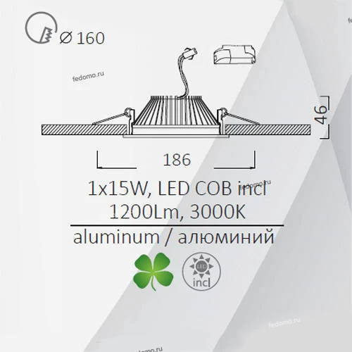 Точечный светильник встроенный A2415PL-1WH из серии Uovo от компании Arte Lamp удачно впишется в интерьер кафе, кухни, оформленных в стиле модерн. Светодиодный светильник имеет 1 плафон и 1 лампочку с мощностью 15W, напряжением 220V, цветовой температурой 3000К. Основной цвет и материал арматуры - белый металл, материал плафона - стекло. В комплекте лампочки, LED-драйвер. Габариты модели: высота - 60 мм, диаметр - 180 мм. Срок службы изделия составляет не менее 25000 часов. Лучшая цена и условия доставки на Arte Lamp A2415PL-1WH в интернет-магазине Fedomo.ru.
