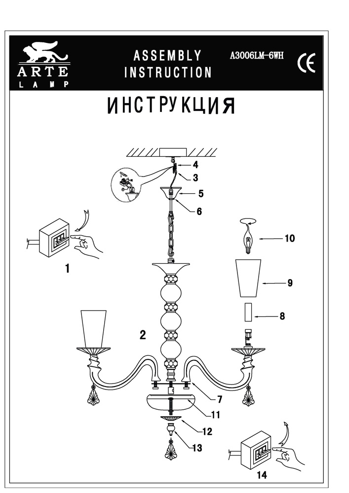Люстра подвесная A3006LM-6WH из серии Legacy от компании Arte Lamp устанавливается на металлический крюк. Классическая люстра украшена хрусталем высокого качества и прекрасно подойдет в качестве источника основного света для гостиной, прихожей и коридора, кафе, кабинета. Основной цвет модели - белый, материал арматуры - металл, стекло. Люстра имеет 6 плафонов со свечением вверх, материал изготовления - матовое прозрачное стекло, хрусталь. Модель оснащена цоколем E14 (6хE14), имеет 6 лампочек с общей мощностью 360W и напряжением 220V. Светильник поддерживает подключение диммера. Габариты: высота - 670 мм, диаметр - 730 мм, длина подвеса - 1000 мм. В комплекте есть скоба для крепления к потолку. Лучшая цена и условия доставки на Arte Lamp A3006LM-6WH в интернет-магазине Fedomo.ru.
