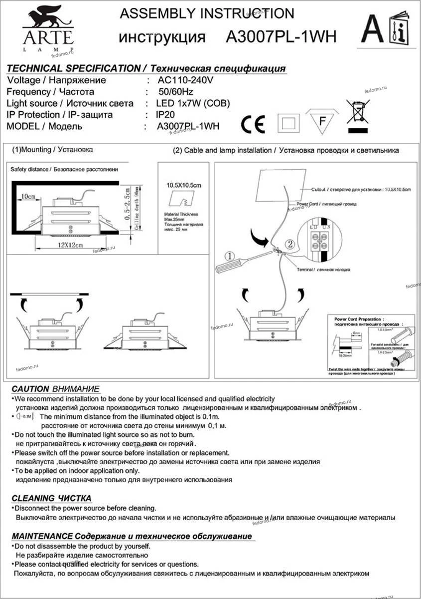 Точечный светильник встроенный A3007PL-1WH из серии Studio от компании Arte Lamp удачно впишется в интерьер экспозиции, гостиной, кафе, кухни, магазина, оформленных в современном стиле. Светодиодный светильник имеет 1 плафон и 1 лампочку с мощностью 7W, напряжением 220V, цветовой температурой 3000К. Основной цвет и материал арматуры - белый металл. В комплекте лампочки, LED-драйвер. Габариты модели: высота - 73 мм, диаметр - 120 мм. Срок службы изделия составляет не менее 25000 часов. Лучшая цена и условия доставки на Arte Lamp A3007PL-1WH в интернет-магазине Fedomo.ru.