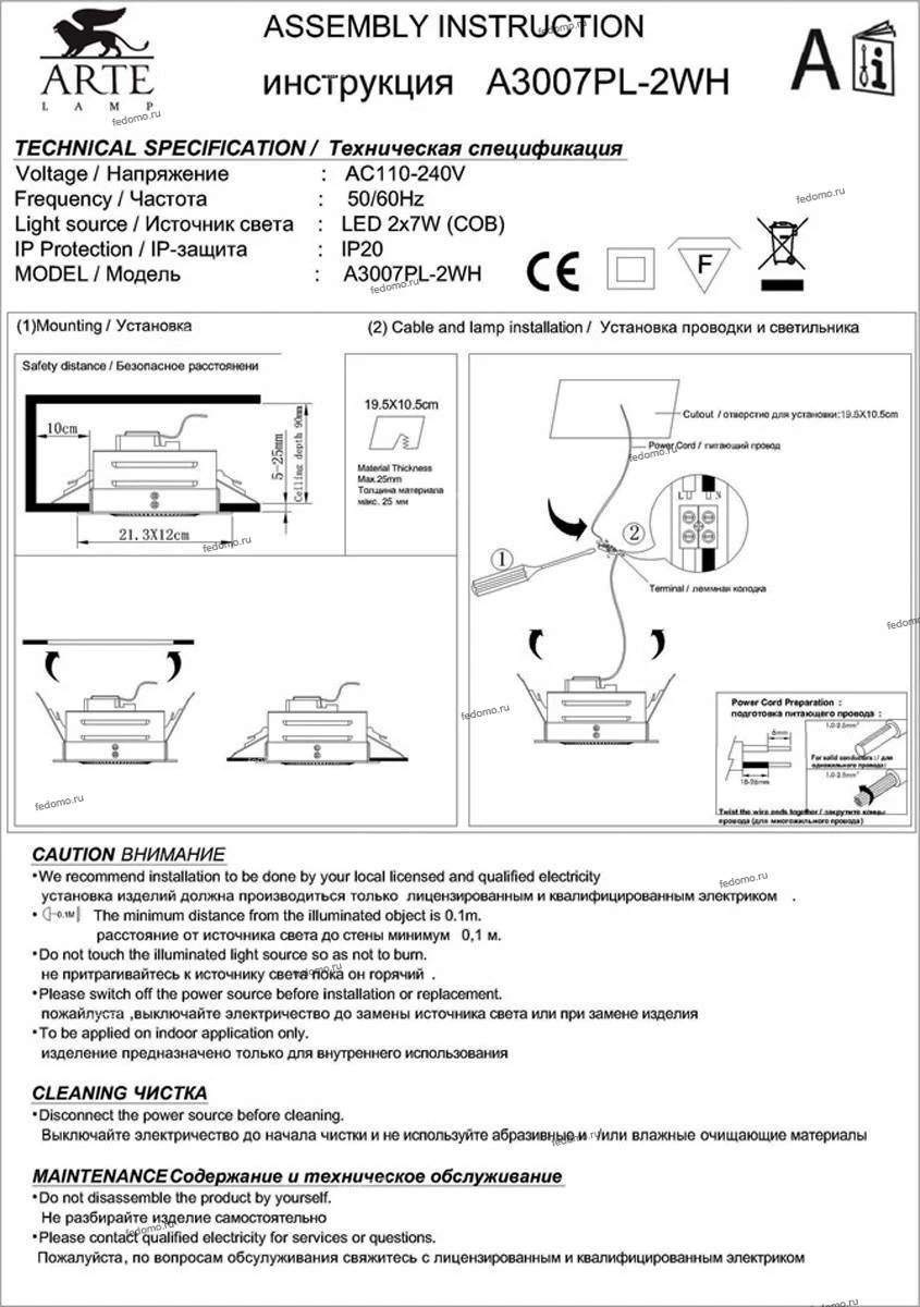 Точечный светильник встроенный A3007PL-2WH из серии Studio от компании Arte Lamp удачно впишется в интерьер экспозиции, гостиной, кабинета, кафе, кухни, магазина, офиса, спальни, оформленных в современном стиле. Светодиодный светильник имеет 2 плафона и 2 лампочки с мощностью 7W, напряжением 220V, цветовой температурой 3000К. Основной цвет и материал арматуры - белый металл. В комплекте лампочки, LED-драйвер. Габариты модели: длина - 120 мм, ширина - 220 мм, высота - 78 мм. Срок службы изделия составляет не менее 25000 часов. Лучшая цена и условия доставки на Arte Lamp A3007PL-2WH в интернет-магазине Fedomo.ru.