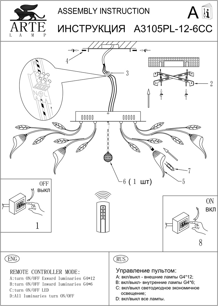 Люстра потолочная A3105PL-12-6CC из серии Calla от компании Arte Lamp оснащена пультом управления и устанавливается на монтажную пластину. Люстра с цветами прекрасно подойдет в качестве источника основного света для прихожей и коридора, кафе, кухни, оформленных в стиле модерн, флористика, ар нуво. Основной цвет модели - хром, материал арматуры - металл. Люстра имеет 18 плафонов со свечением вниз, материал изготовления - стекло. Модель оснащена цоколем G4,LED, имеет 18,35 лампочек с общей мощностью 361,75W и напряжением 220V. Светильник имеет цветовую температуру 2700К. Габариты: высота - 280 мм, диаметр - 980 мм. В комплекте есть лампочки, трансформатор. Срок службы модели составит не менее 1500 часов. Лучшая цена и условия доставки на Arte Lamp A3105PL-12-6CC в интернет-магазине Fedomo.ru.