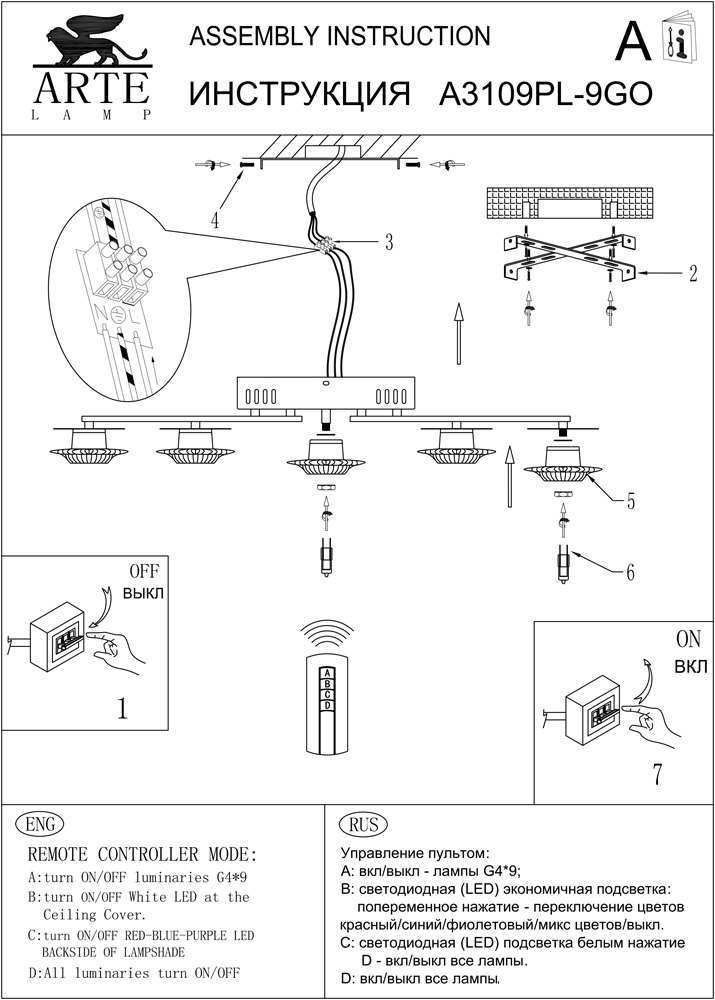 Используемые материалы арматуры - металл гальванизированный, плафона - стекло. Цвет базы - золото, плафон - прозрачный. Класс энергоэффективности - E. Особенность: раздельное включение.