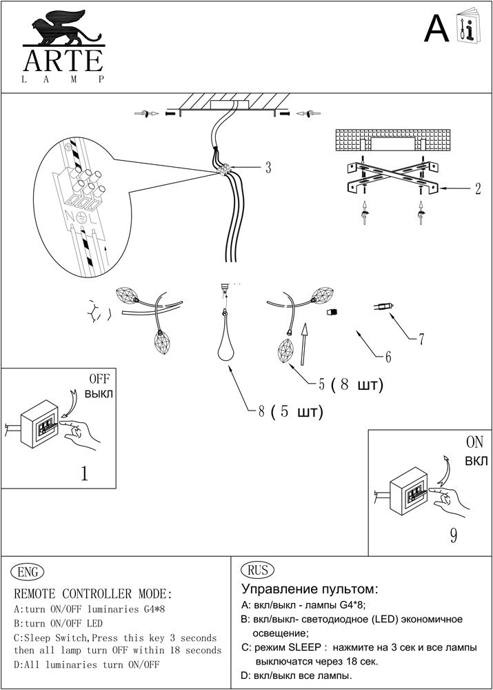 Используемые материалы арматуры - металл гальванизированный, плафона - стекло. Цвет базы - хром, плафон - прозрачный. Класс энергоэффективности - E. Особенность: раздельное включение.
