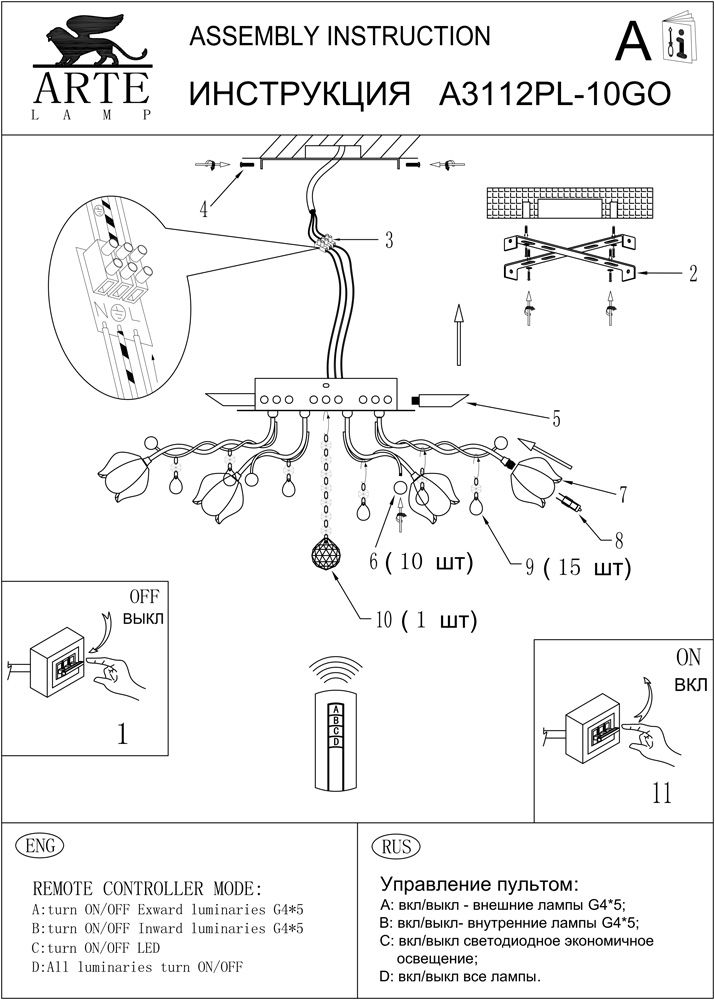 Люстра потолочная A3112PL-10GO из серии Fanfan от компании Arte Lamp оснащена пультом управления и устанавливается на монтажную пластину. Люстра с цветами и листьями прекрасно подойдет в качестве источника основного света для прихожей и коридора, кафе, кухни, оформленных в стиле модерн, флористика, ар нуво. Основной цвет модели - золото, материал арматуры - металл. Люстра имеет 10 плафонов со свечением вниз, материал изготовления - стекло. Модель оснащена цоколем G4,LED, имеет 10,28 лампочек с общей мощностью 202,8W и напряжением 220V. Светильник имеет цветовую температуру 2700К. Габариты: высота - 240 мм, диаметр - 710 мм. В комплекте есть лампочки, трансформатор. Срок службы модели составит не менее 1500 часов. Лучшая цена и условия доставки на Arte Lamp A3112PL-10GO в интернет-магазине Fedomo.ru.