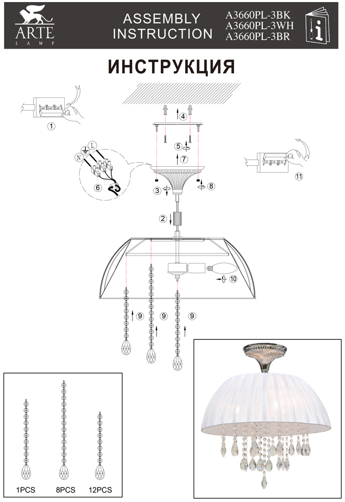 Люстра потолочная A3660PL-3BK из серии Padova от компании Arte Lamp устанавливается на монтажную пластину. Люстра украшена хрусталем и прекрасно подойдет в качестве источника основного света для гостиной, спальни, кабинета, оформленных в стиле арт-деко. Основной цвет модели - черный, материал арматуры - металл. Люстра имеет 1 абажур со свечением вниз, материал изготовления - ткань. Модель оснащена цоколем E14, имеет 3 лампочки с общей мощностью 120W и напряжением 220V. Светильник поддерживает подключение диммера. Габариты: высота - 540 мм, диаметр - 500 мм. Лампочки в комплект не входят. Лучшая цена и условия доставки на Arte Lamp A3660PL-3BK в интернет-магазине Fedomo.ru.