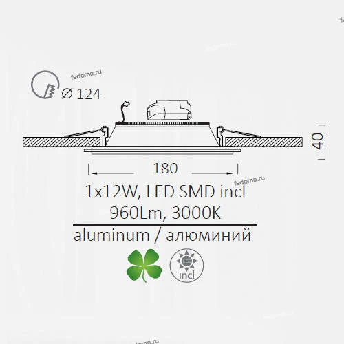 Точечный светильник встроенный A4112PL-1WH из серии Raggio от компании Arte Lamp удачно впишется в интерьер прихожей и коридора, кухни, оформленных в стиле модерн. Светодиодный светильник имеет 1 плафон и 1 лампочку с мощностью 12W, напряжением 220V, цветовой температурой 3000К. Основной цвет и материал арматуры - белый металл, материал плафона - стекло. В комплекте лампочки, LED-драйвер. Габариты модели: высота - 30 мм, диаметр - 160 мм. Срок службы изделия составляет не менее 10000 часов. Лучшая цена и условия доставки на Arte Lamp A4112PL-1WH в интернет-магазине Fedomo.ru.