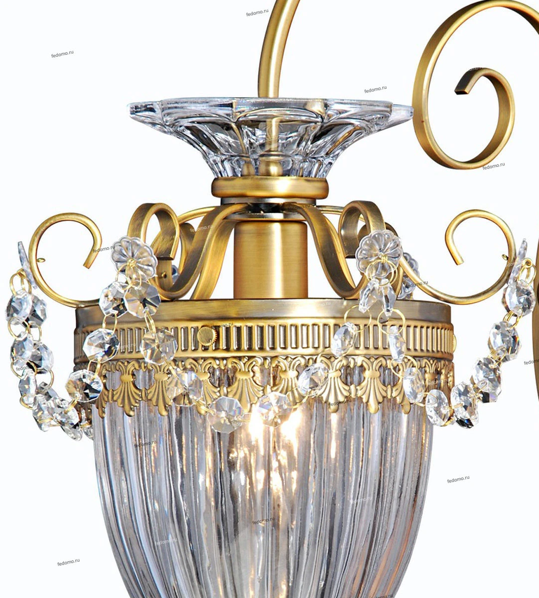Используемые материалы арматуры - металл гальванизированный, стекло, хрусталь, плафона - стекло. Цвет базы - матовая латунь, плафон - прозрачный.