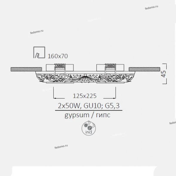 Точечный светильник встроенный A5208PL-2WC из серии Pezzi от компании Arte Lamp удачно впишется в интерьер кафе, кухни, оформленных в стиле модерн. Светильник имеет 1 плафон и 2 лампочки с цоколем GU10 с мощностью 50W, напряжением 220V. Модель поддерживает подключение диммера. Основной цвет и материал арматуры - бежевый гипс. Лампочки в комплект не входят. Габариты модели: длина - 230 мм, ширина - 130 мм, высота - 50 мм. Лучшая цена и условия доставки на Arte Lamp A5208PL-2WC в интернет-магазине Fedomo.ru.