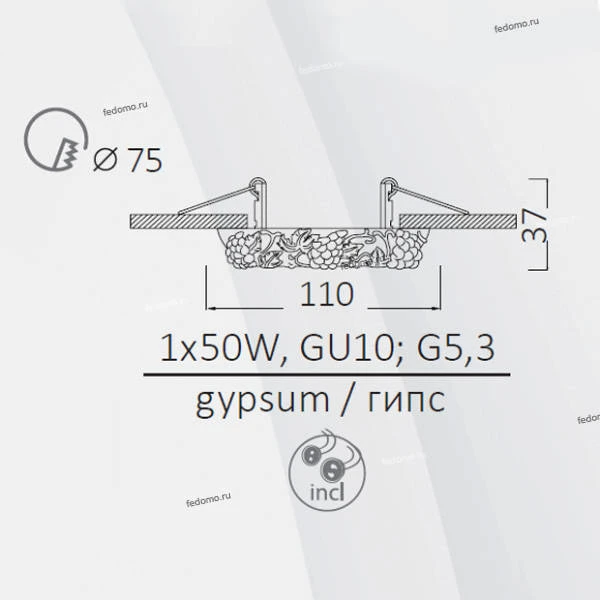 Точечный светильник встроенный A5211PL-1WC из серии Pezzi от компании Arte Lamp удачно впишется в интерьер гостиной, кабинета, кухни, прихожей и коридора, спальни, оформленных в стиле модерн. Светильник с виноградом имеет 1 плафон и 1 лампочку с цоколем GU10 с мощностью 50W, напряжением 220V. Модель поддерживает подключение диммера. Основной цвет и материал арматуры - бежевый гипс. Лампочки в комплект не входят. Габариты модели: высота - 40 мм, диаметр - 110 мм. Лучшая цена и условия доставки на Arte Lamp A5211PL-1WC в интернет-магазине Fedomo.ru.