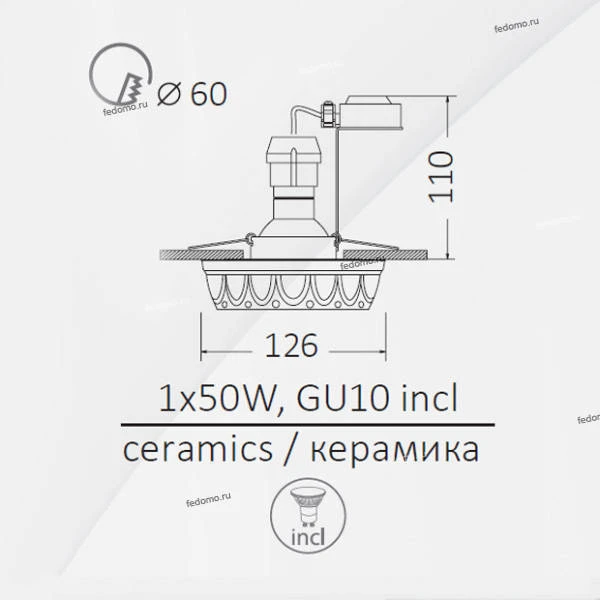 Точечный светильник встроенный A5245PL-1WH из серии Cratere от компании Arte Lamp удачно впишется в интерьер кафе, кухни, ванной, оформленных в стиле модерн. Светильник имеет 1 плафон и 1 лампочку с цоколем GU10 с мощностью 50W, напряжением 220V, цветовой температурой 2700К. Основной цвет и материал арматуры - белая керамика. Лампочки имеются в комплекте. Габариты модели: высота - 110 мм, диаметр - 130 мм. Срок службы изделия составляет не менее 1500 часов. Лучшая цена и условия доставки на Arte Lamp A5245PL-1WH в интернет-магазине Fedomo.ru.