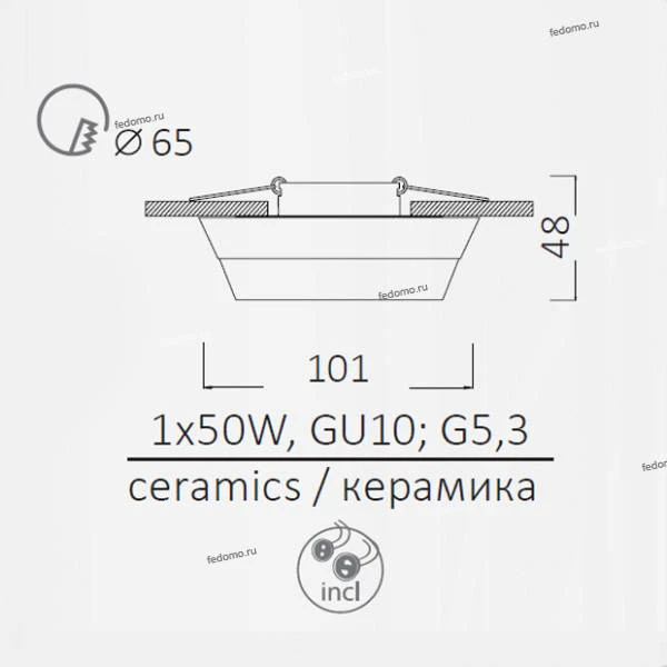 Точечный светильник встроенный A5247PL-1WH из серии Pezzi от компании Arte Lamp удачно впишется в интерьер гостиной, кабинета, кафе, кухни, прихожей и коридора, спальни, оформленных в стиле модерн. Светильник имеет 1 плафон и 1 лампочку с цоколем GU10 с мощностью 50W, напряжением 220V. Модель поддерживает подключение диммера. Основной цвет и материал арматуры - белый керамика. Лампочки в комплект не входят. Габариты модели: высота - 48 мм, диаметр - 101 мм. Лучшая цена и условия доставки на Arte Lamp A5247PL-1WH в интернет-магазине Fedomo.ru.