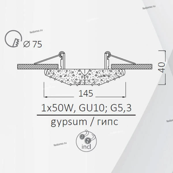 Точечный светильник встроенный A5296PL-1WC из серии Pezzi от компании Arte Lamp удачно впишется в интерьер гостиной, кабинета, кафе, кухни, прихожей и коридора, спальни, оформленных в стиле модерн, морской. Светильник имеет 1 плафон и 1 лампочку с цоколем GU10 с мощностью 50W, напряжением 220V. Модель поддерживает подключение диммера. Основной цвет и материал арматуры - бежевый гипс. Лампочки в комплект не входят. Габариты модели: высота - 40 мм, диаметр - 150 мм. Лучшая цена и условия доставки на Arte Lamp A5296PL-1WC в интернет-магазине Fedomo.ru.