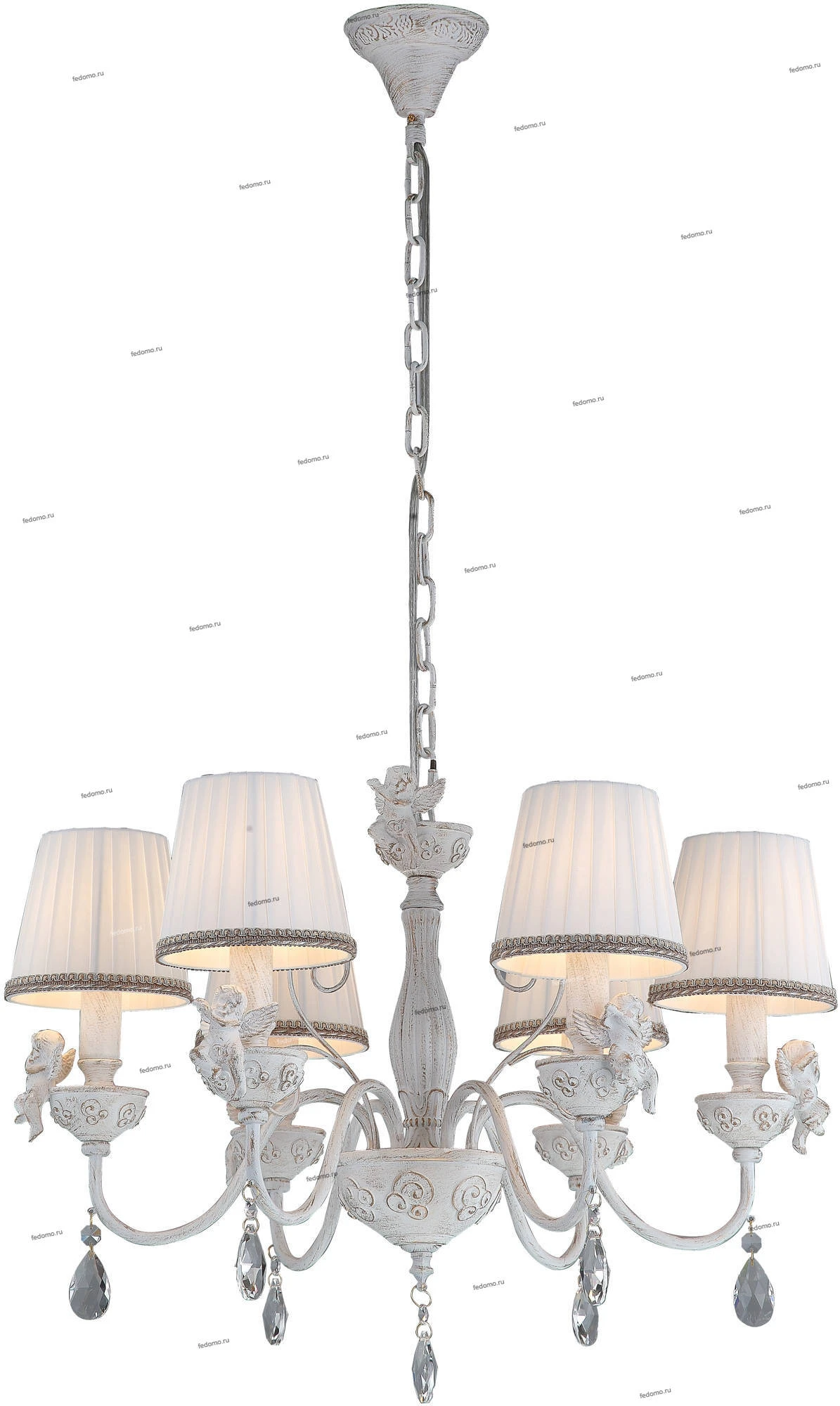 Люстра подвесная A5656LM-6WG из серии Cherubino от компании Arte Lamp регулируется по высоте и устанавливается на металлический крюк. Классическая люстра с ангелами прекрасно подойдет в качестве источника основного света для гостиной, холла, зала, оформленных в стиле прованс. Основной цвет модели - белый, материал арматуры - металл. Люстра имеет 6 абажуров со свечением вверх, материал изготовления - матовая ткань. Модель оснащена цоколем E14 (6xE14), имеет 6 лампочек с общей мощностью 240W и напряжением 220V. Светильник поддерживает подключение диммера. Габариты: длина - 610 мм, ширина - 610 мм, высота - 410 мм, диаметр - 610 мм, длина подвеса - 600 мм. Лампочки в комплект не входят. Лучшая цена и условия доставки на Arte Lamp A5656LM-6WG в интернет-магазине Fedomo.ru.
