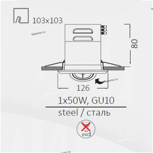 Точечный светильник встроенный A5941PL-1WH из серии Cardani Piccolo от компании Arte Lamp удачно впишется в интерьер гостиной, кабинета, кафе, кухни, магазина, прихожей и коридора, спальни, ванной, оформленных в современном стиле. Светильник имеет 1 плафон и 1 лампочку с цоколем GU10 с мощностью 50W, напряжением 220V. Модель с направленным светом поддерживает подключение диммера. Основной цвет и материал арматуры - белый металл. Лампочки в комплект не входят. Габариты модели: длина - 126 мм, ширина - 126 мм, высота - 80 мм, диаметр - 130 мм. Лучшая цена и условия доставки на Arte Lamp A5941PL-1WH в интернет-магазине Fedomo.ru.