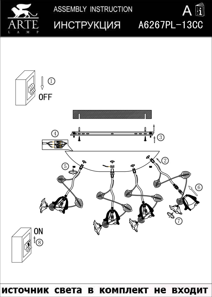Люстра потолочная A6267PL-13CC из серии Cincin от компании Arte Lamp устанавливается на монтажную пластину. Современная люстра с розами и листьями прекрасно подойдет в качестве источника основного света для гостиной, прихожей и коридора, спальни, кухни, оформленных в стиле флористика. Основной цвет модели - белый, материал арматуры - металл, керамика. Люстра имеет 13 плафонов, материал изготовления - стекло. Модель оснащена цоколем G4 (13хG4), имеет 13 лампочек с общей мощностью 260W и напряжением 12V. Светильник имеет цветовую температуру 2700К. Габариты: высота - 330 мм, диаметр - 620 мм. В комплекте есть лампочки, трансформатор. Срок службы модели составит не менее 1500 часов. Лучшая цена и условия доставки на Arte Lamp A6267PL-13CC в интернет-магазине Fedomo.ru.