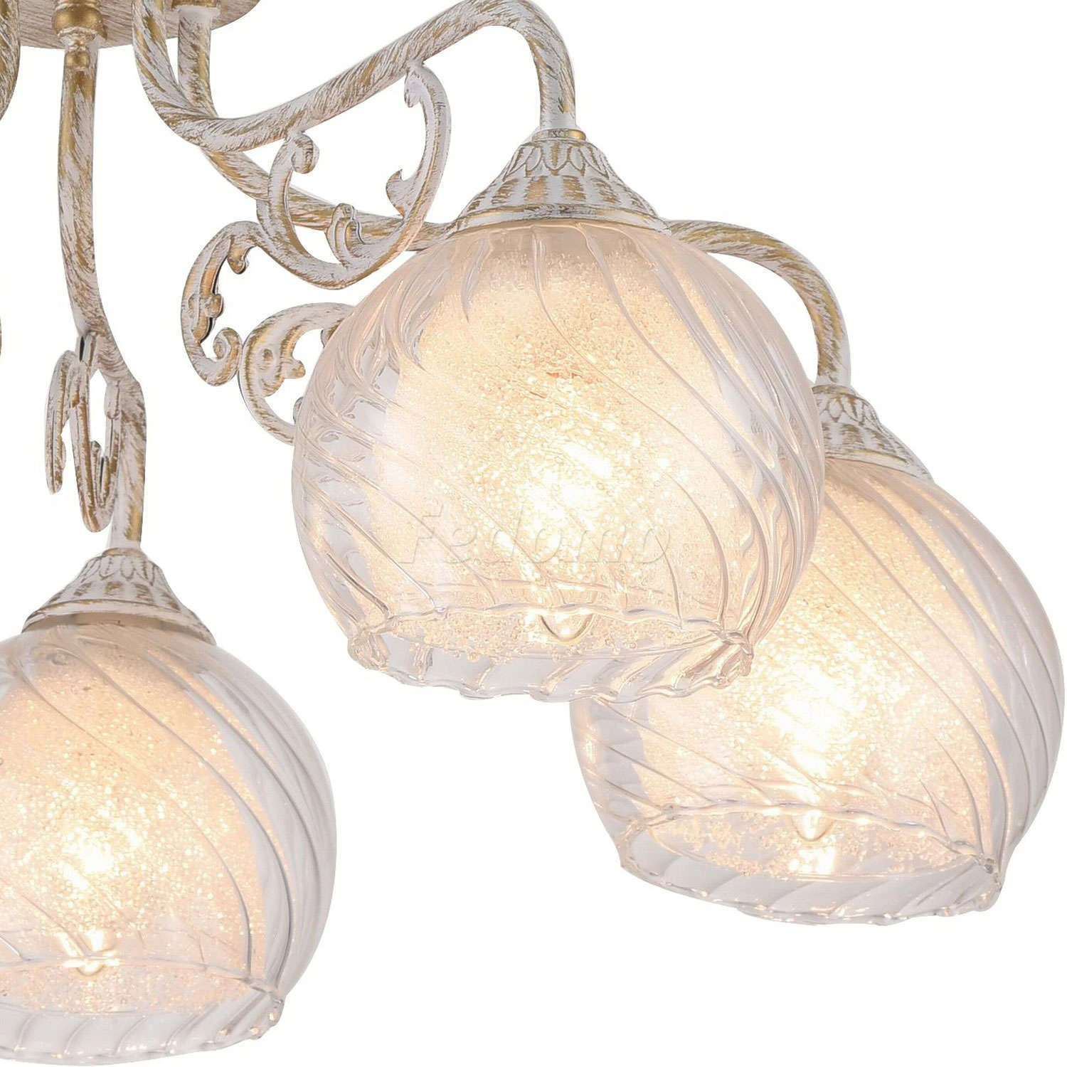 Используемые материалы арматуры - металл гальванизированный, плафона - стекло c хрустальной крошкой. Цвет базы - бело-золотой, плафон - прозрачный. Диаметр потолочной чашки 15 см. Особенность: раздельное включение.
