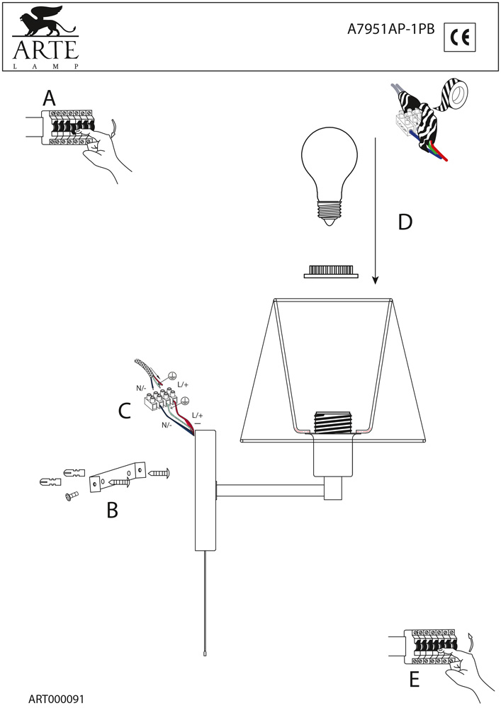 Бра A7951AP-1PB из серии Hall от компании Arte Lamp отлично подойдет в качестве дополнительного источника света для спальни, выполненной в стиле модерн, современный. Основной цвет модели - желтый, материал арматуры - металл. Однорожковое бра имеет 1 лампочку, оснащено цоколем E27 с общей мощностью 60W и напряжением 220V. Абажур направлен вверх, материал изготовления - ткань. Светильник поддерживает подключение диммера. Модель оборудована выключателем на веревочке. Лампочки в комплект не входят. Лучшая цена и условия доставки на Arte Lamp A7951AP-1PB в интернет-магазине Fedomo.ru.