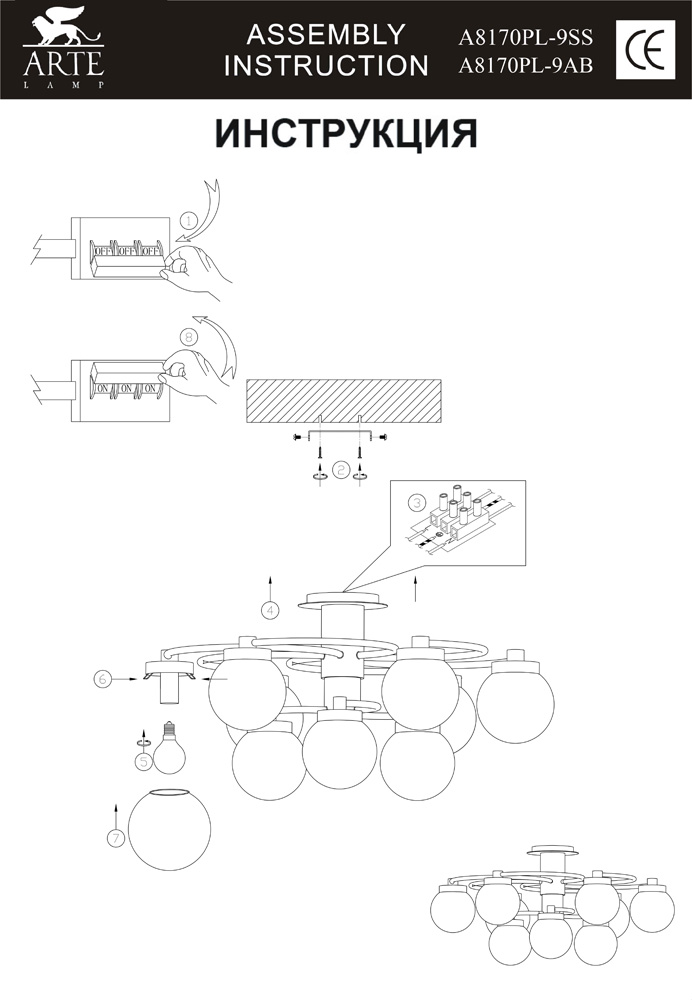 Люстра потолочная A8170PL-9SS из серии Cloud от компании Arte Lamp устанавливается на монтажную пластину. Современная люстра прекрасно подойдет в качестве источника основного света для гостиной, спальни, кухни, кабинета, оформленных в стиле модерн. Основной цвет модели - белый, материал арматуры - металл. Люстра имеет 9 плафонов со свечением вниз, материал изготовления - матовое стекло. Модель оснащена цоколем E14 (9хE14), имеет 9 лампочек с общей мощностью 360W и напряжением 220V. Светильник поддерживает подключение диммера. Габариты: высота - 300 мм, диаметр - 600 мм. Лампочки в комплект не входят. Лучшая цена и условия доставки на Arte Lamp A8170PL-9SS в интернет-магазине Fedomo.ru.