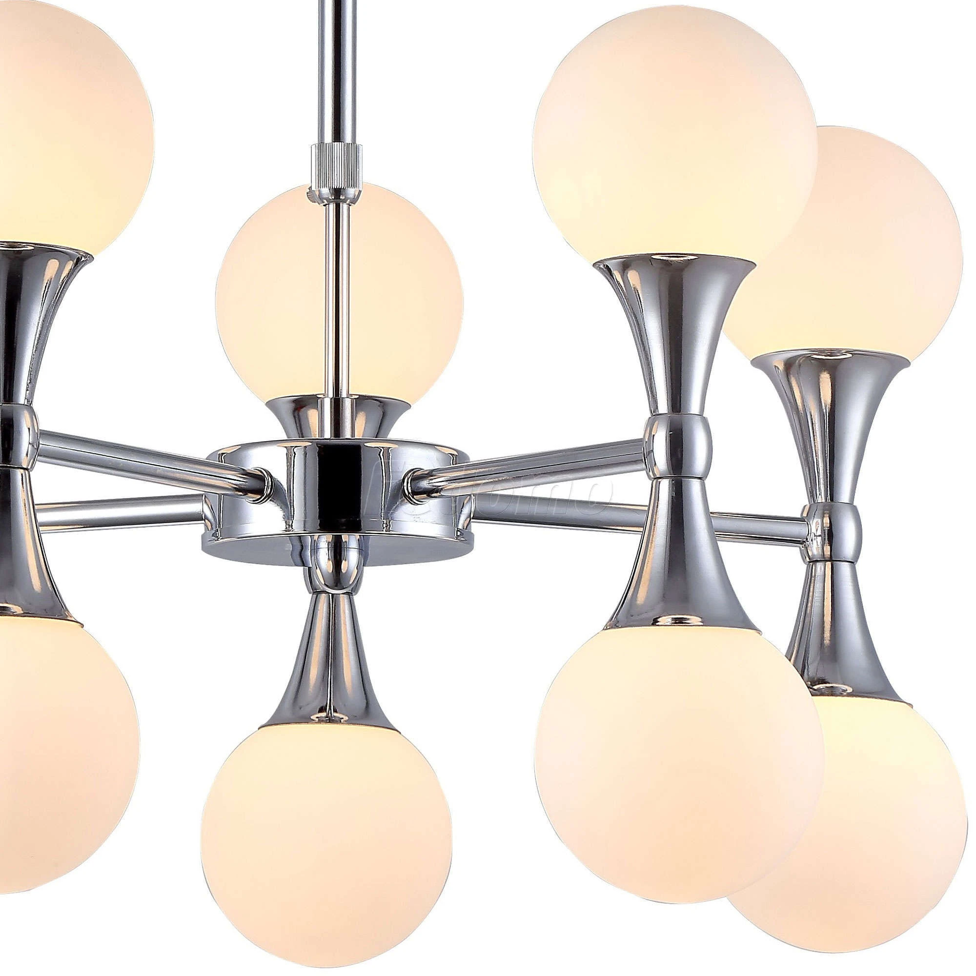 Используемые материалы арматуры - металл гальванизированный, плафона - стекло. Цвет базы - хром, плафон - белый. Диаметр потолочной чашки 12 см. Особенность: раздельное включение.