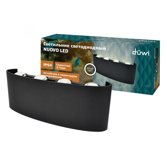 Архитектурная подсветка светодиодная 24775 7 от немецкого бренда Duwi изготовлена из пластика в черном цвете. Рассчитана на диодные источники света, мощность 8 Вт. Стиль – современный, техно. Модель имеет плафон из пластика, подходит для установки на улице на стене на даче, на фасаде, в кафе, в магазине, в офисе, на веранде и в беседке. Освещаемая площадь до 2 кв. м, цветовая температура 4200 К, индекс цветопередачи >80 Ra, световой поток 560 lm. Питание от сети 220 В. Степень защиты от влаги и пыли IP54. Габариты: длина 210 мм, ширина 42 мм, высота 78 мм. Заказывайте Duwi 24775 7 онлайн по низкой цене с гибкими условиями доставки на Fedomo.ru!