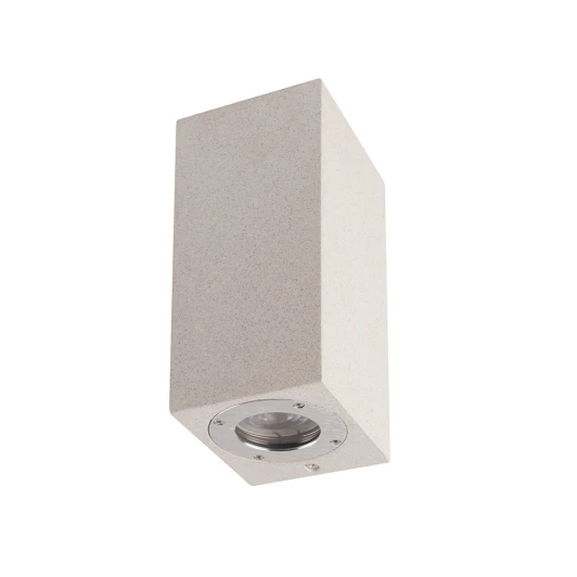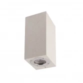 Уличный двойной настенный светильник испанской компании MANTRA из бетона белого цвета. Подходит для использования на улице. Степень защиты IP65. Рекомендованы к установки светодиотные лампы с типом цоколя GU10 максимальной мощностью 12W.